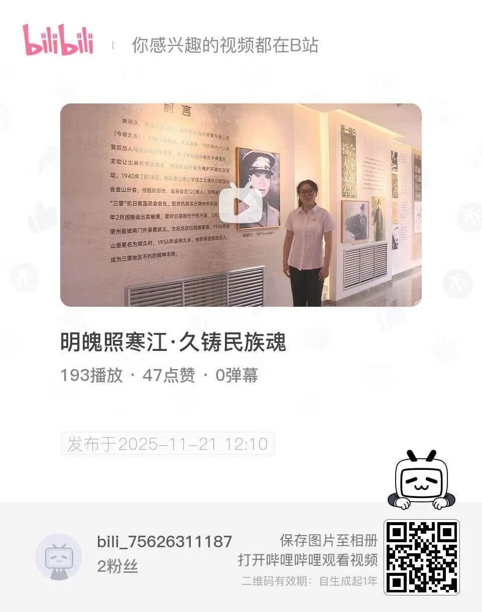 在明久村,红色基因代代相传,铸就民族之魂。从抗日年代,姚明久烈士脱下长衫、扛枪上阵,以热血捍卫家国;到和平年代,将抗联精神化为乡村振兴的动力,推动环境整治、产业发展与红色教育,让村庄焕发新颜。如今,“95后”青年张雨、“农学硕士”李阳等新时代青年纷纷返乡创新,以科技与文化为翼,续写乡村发展的新篇。这是一场跨越时空的精神接力,从抗日战场到乡村振兴,从红色传承到青年担当,明久村的故事,是民族精神在岁月长河中熠熠生辉的见证,激励着每一代人以先辈为榜样,为家乡、为祖国书写壮丽篇章。
