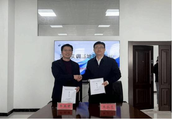 王永亮与牟英君代表双方签署研究生实习实训合作协议书,参会领导共同为实习实训基地揭牌。