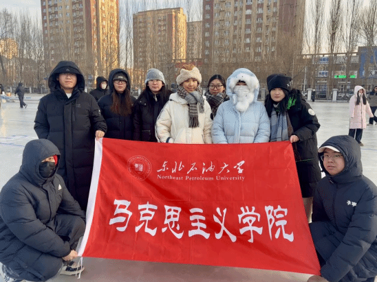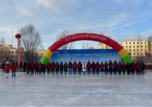 12月14日,东北石油大学冰雪体育文化节冰上运动会在滑冰场隆重开幕,马克思主义学院学生积极参与。